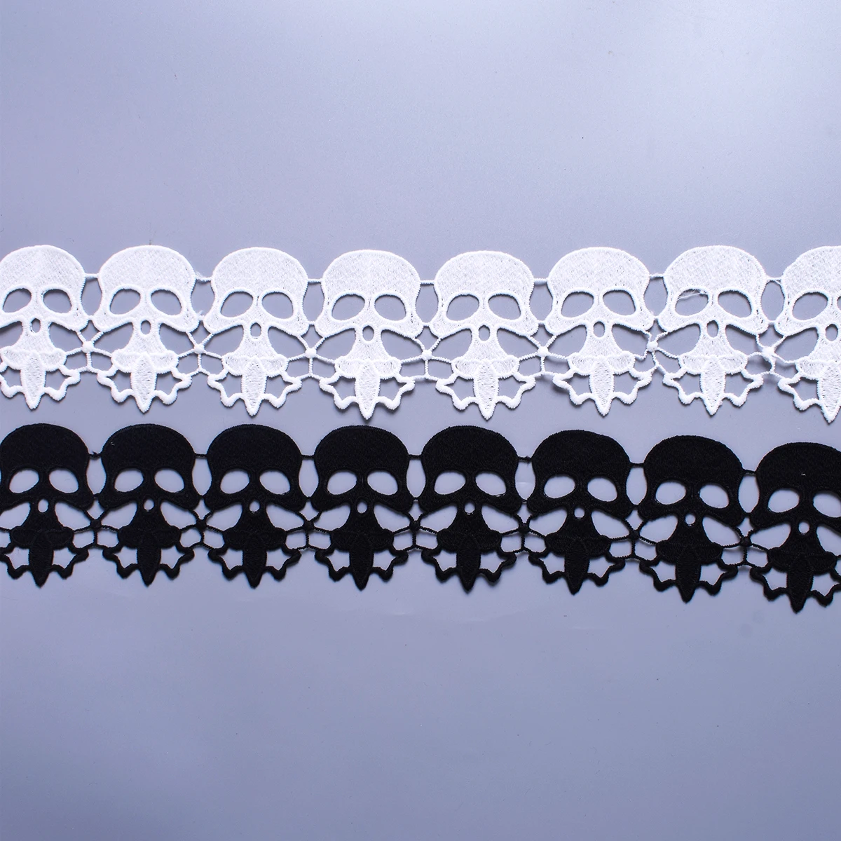 1Yard White Black Skull Lace Fabric Trim Embroidery Applique for Sewing Cloth Craft Garment Accessories Supplies 8CM Wide