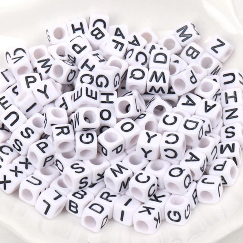 Hot Wholesale White and Black Letter Alphabet Cube Acrylic Letter loose Beads Fit Jewelry making 6mm 100pcs