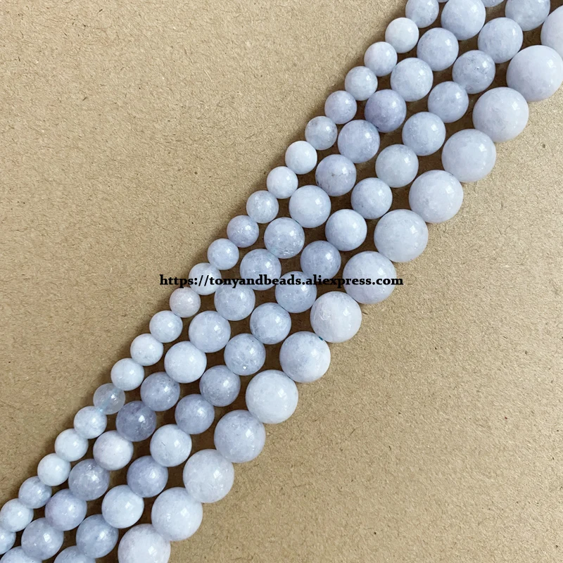 6 8 10 12 14MM Natural Stone Lake Blue Chalcedony Jades Spacer Round Beads For Jewelry Making DIY Bracelet Necklace Accessories  Read more