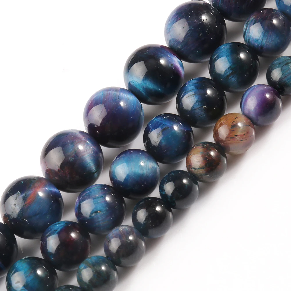 6/8mm AAA Natural Purple Blue Tiger Eye Round Loose Spacer Stone Beads for Jewelry Making DIY Gift Bracelets Necklace Wholesale