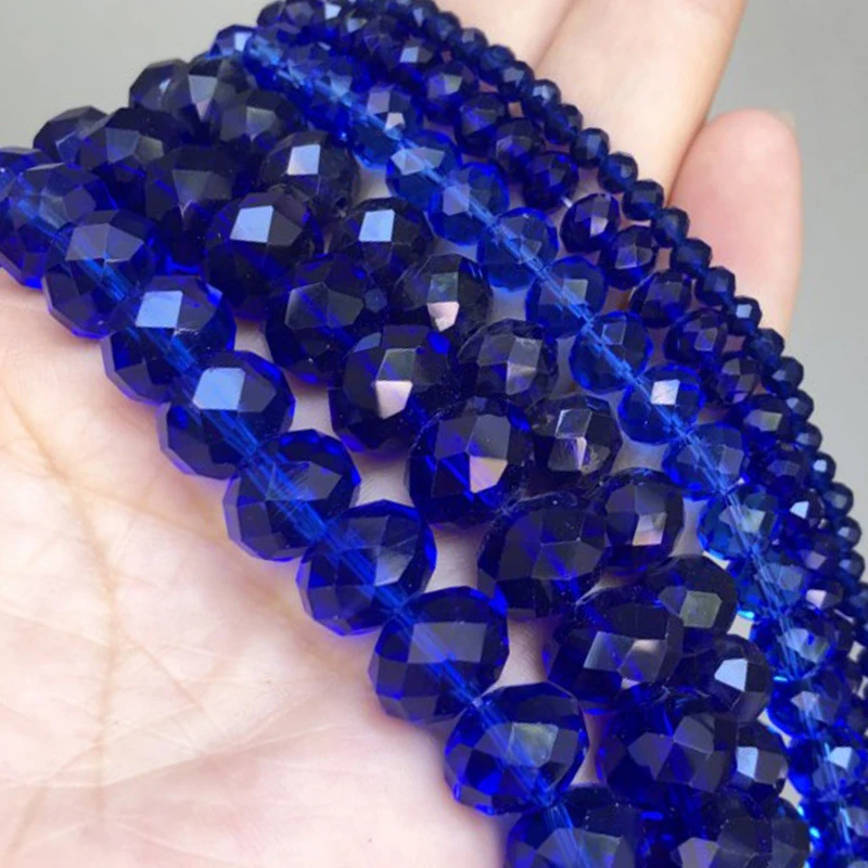 Natural Faceted Dark Blue Crystal Glass Beads Loose Round Rondelle Beads For Jewelry Making DIY Bracelet Necklace 4/6/8/10/12mm