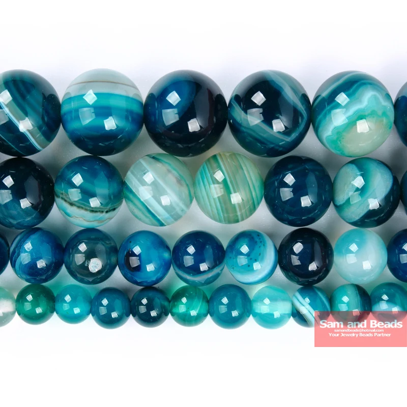 Natural Stone Banded Blue Stripes Agate Round Loose Beads 4 6 8 10 12MM Pick Size For Jewelry Making  Read more