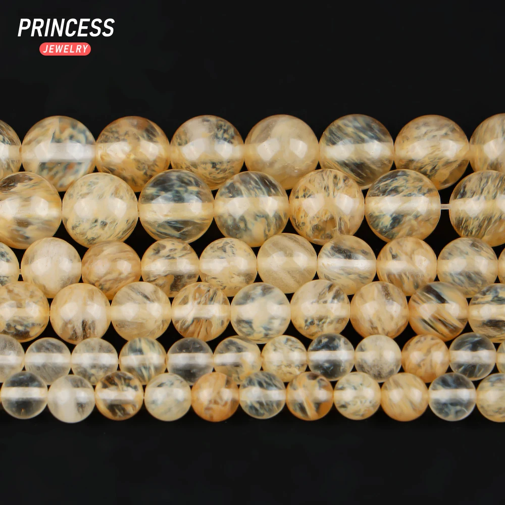 Natural Stone Light Yellow Angelite Beads Round Loose Stone Beads For Jewelry Making DIY Bracelets Accessories 15" 4/6/8/10/12mm