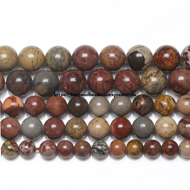 Natural Stone Red Flower Jasper Round Loose Beads 15" Strand 4 6 8 10 12 MM Pick Size For Jewelry
