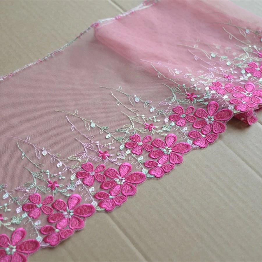 2Yds/Lot 19cm Wide Pink Gazue Fluorescent Rose Red Flower Embroidery Lace Trim For Garments, Wedding Underwear Bra  Read more