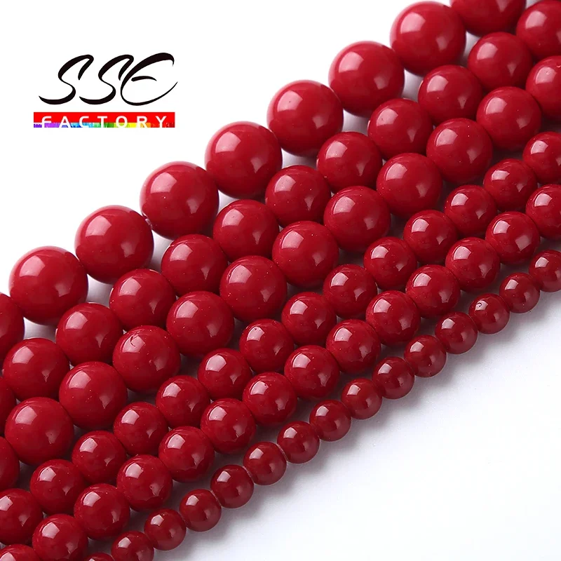 Wholesale Garnet Red Coral Stone Beads Round Loose Spacer Beads For Jewelry Making Diy Bracelets Accessories 4 6 8 10 12mm 15"
