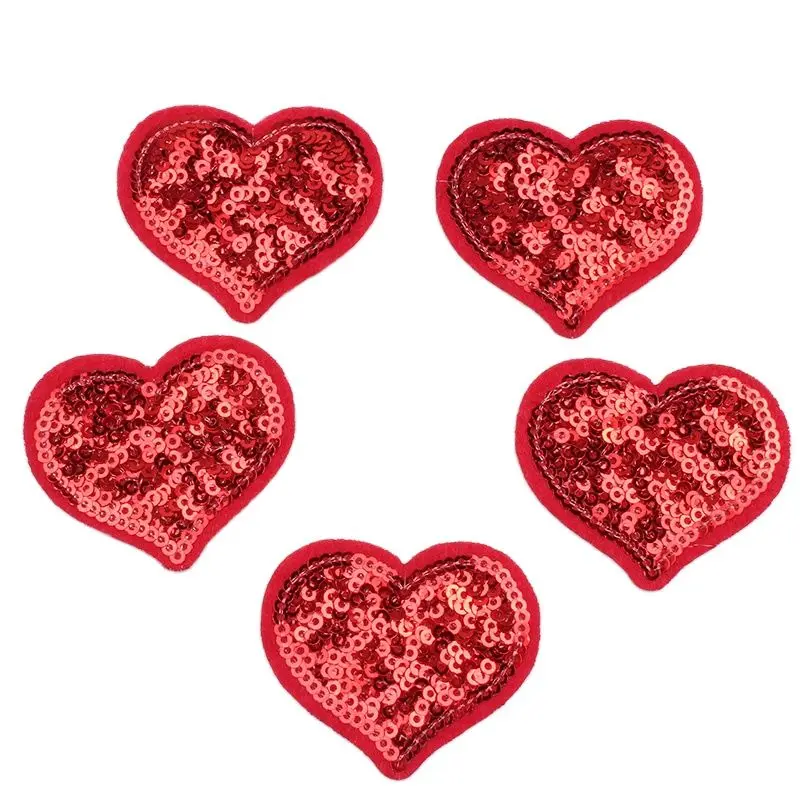 10pcs/lot Sequined Red Heart Patch for Sweater Dress Shirt Sewing Fabric Appliques DIY Iron On Clothes Stickers Handmade Badge