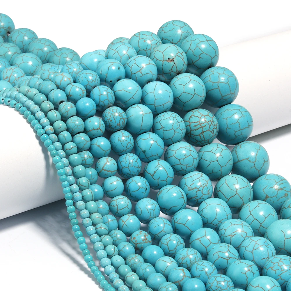 1 Strand 3 4 6 8 10 12 14 16mm Natural Turquoise Stone Round Beads Blue Loose Beads For DIY Fashion Bracelet Earrings Making