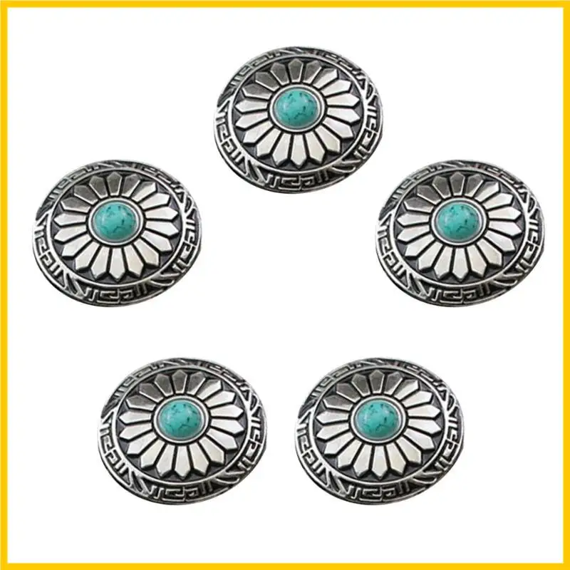 H55A 5 Pcs Leather Decorative Button Imitation Turquoise Buttons Flower Clothes Buttons for Jewelry Making Decoration