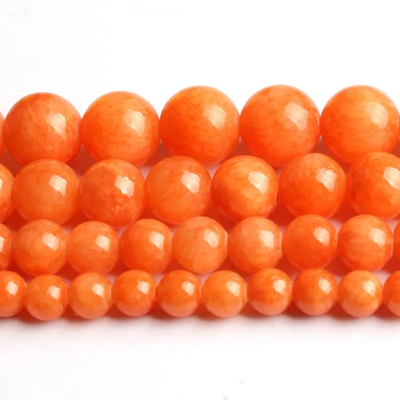 Round Stone Beads Orange Jades 6/8/10/12mm Loose Spacer Perles Beads for DIY Bracelet Jewelry Making Needlework 15" Strand