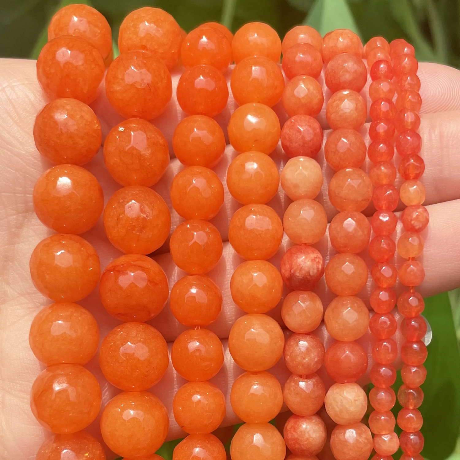 4/6/8/10/12mm Orange Yellow Chalcedony Jade Natural Stone Beads For Making Jewelry Loose Beads DIY Bracelet Earring Accessories