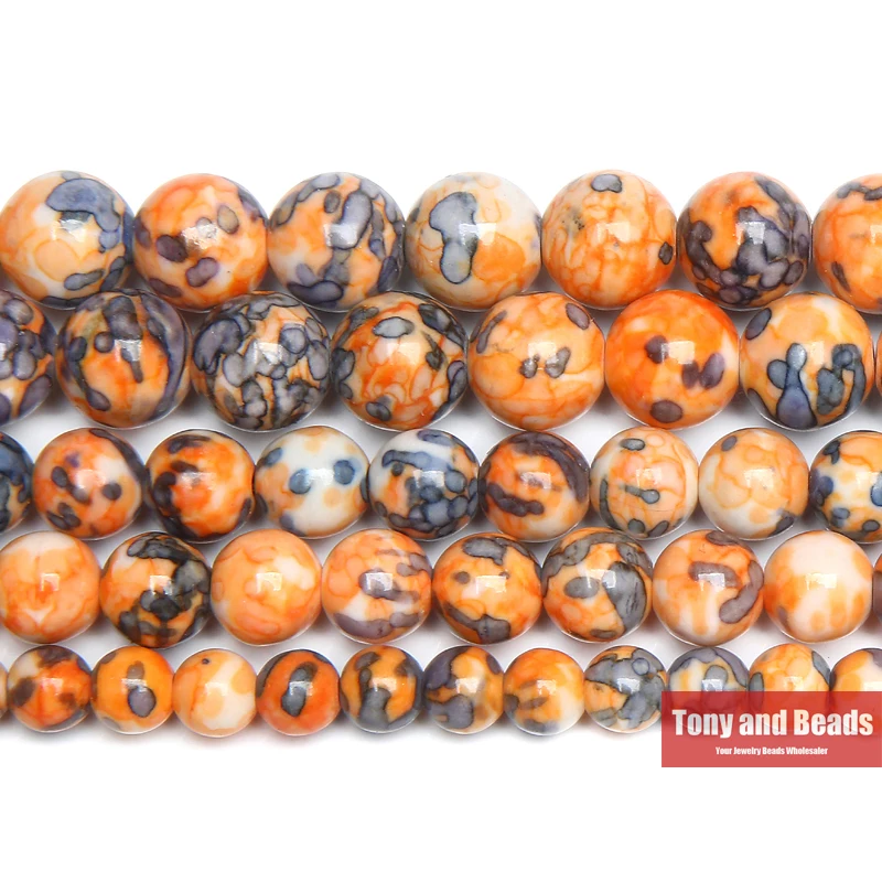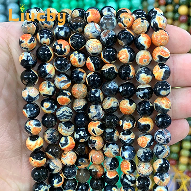 Natural Orange Black Colorful Stone Round Loose Beads 15" Strand 4 6 8 10 12 MM Pick Size For Jewelry