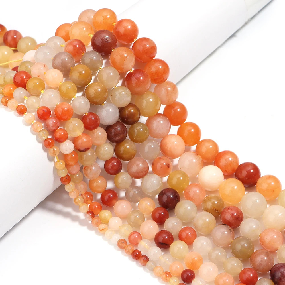 6 8 10 12mm Natural Stone Orange White Jades Loose Spacer Beads For Jewelry Making Round Beads DIY Bracelet Accessories 15''