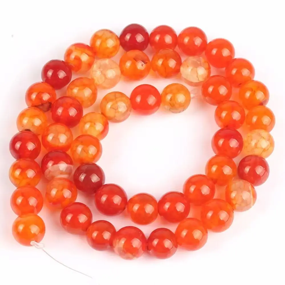 Natural Stone Orange Red Dragon Vein Agates Round Loose Beads 15"6/8/10mm Pick Size For Jewelry Making Diy Bracelet Necklace