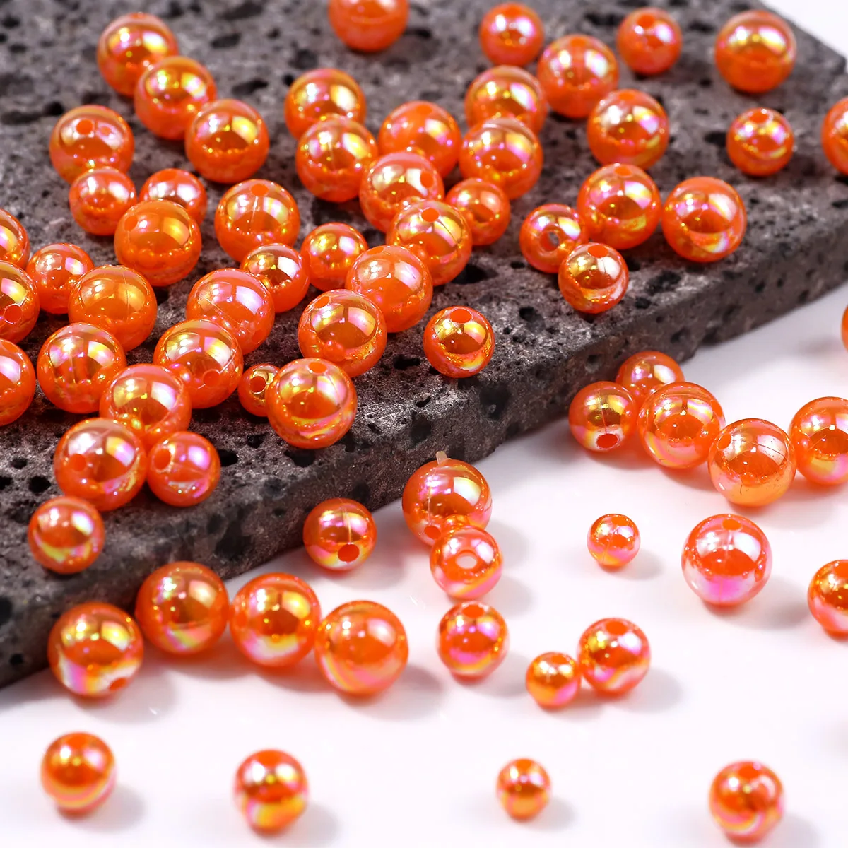 6/8/10mm Orange Acrylic Shiny Colorful Beads Round Spacer Loose Beads For Jewelry Making Bracelet DIY Keychain Accessories