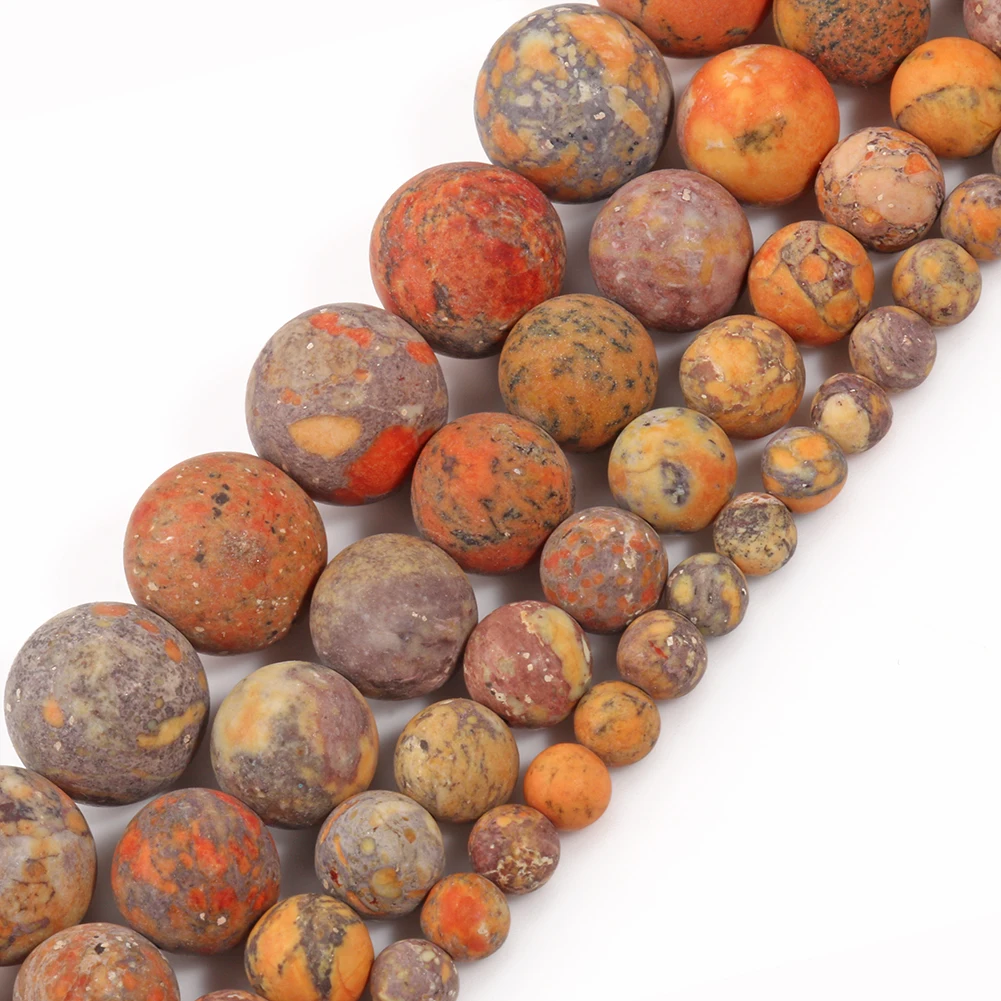 Natural American Turquoises Matte Orange Howlite Round Loose Stone Beads for Jewelry Making DIY Bracelet Accessories 15'' 4-10mm