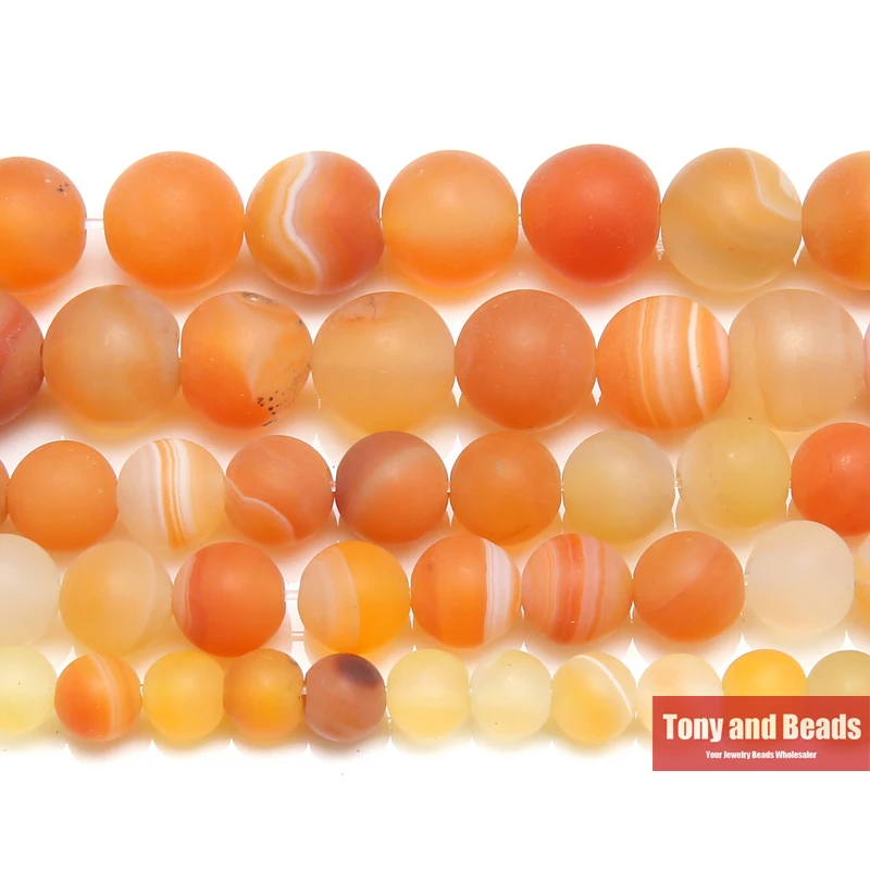15" Natural Stone Frost Grind Arenaceous Matte Orange Stripe Agate Onyx Round Loose Beads 6 8 10 MM Pick Size