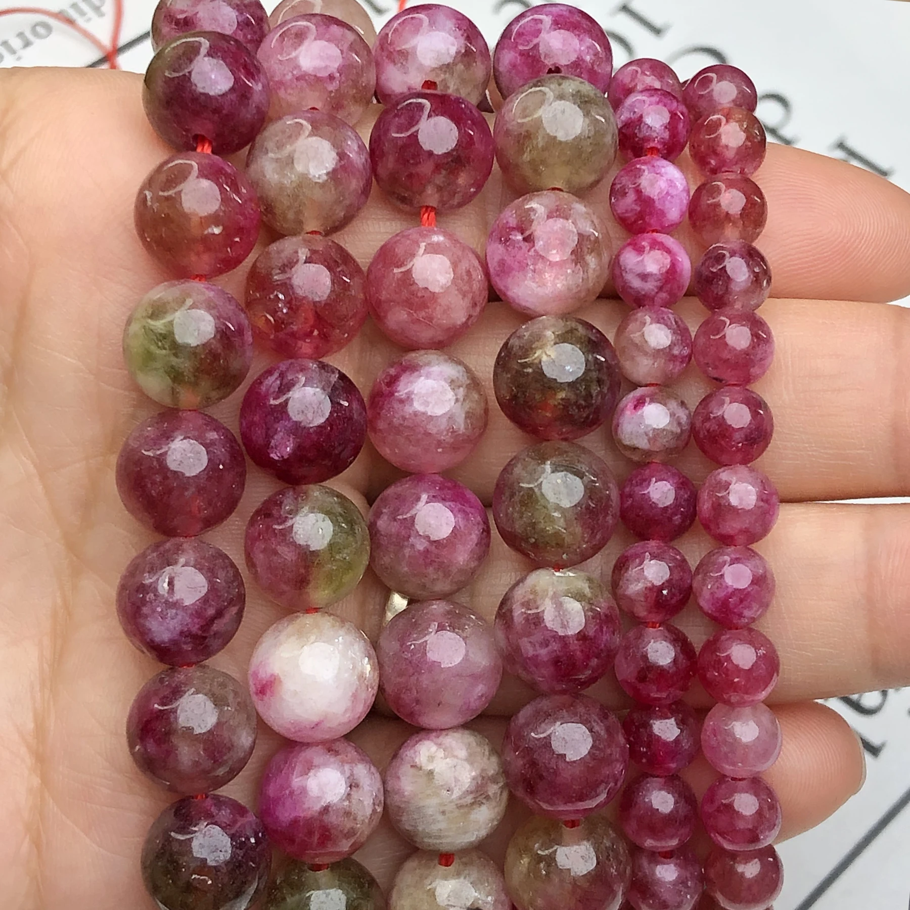 6/8/10MM Natural Pink Tourmaline Crystal Stone Beads Round Loose Spacer Beads For Jewelry Making Diy Earing Bracelet Accessories