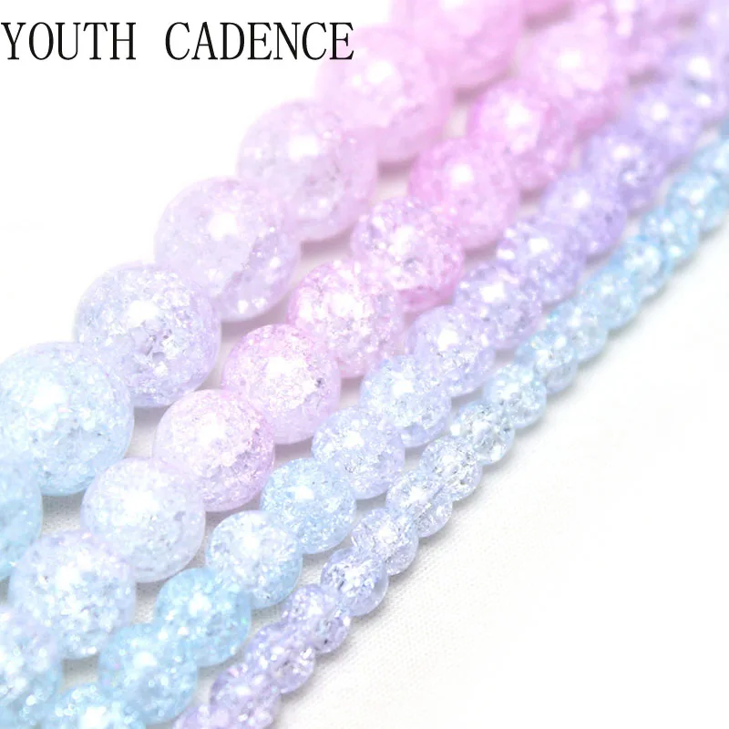 Natural Pink Blue Snow Cracked Crystal Stone Round Loose Beads For Jewelry Making DIY Necklace Bracelet 15inches 4/6/8/10mm