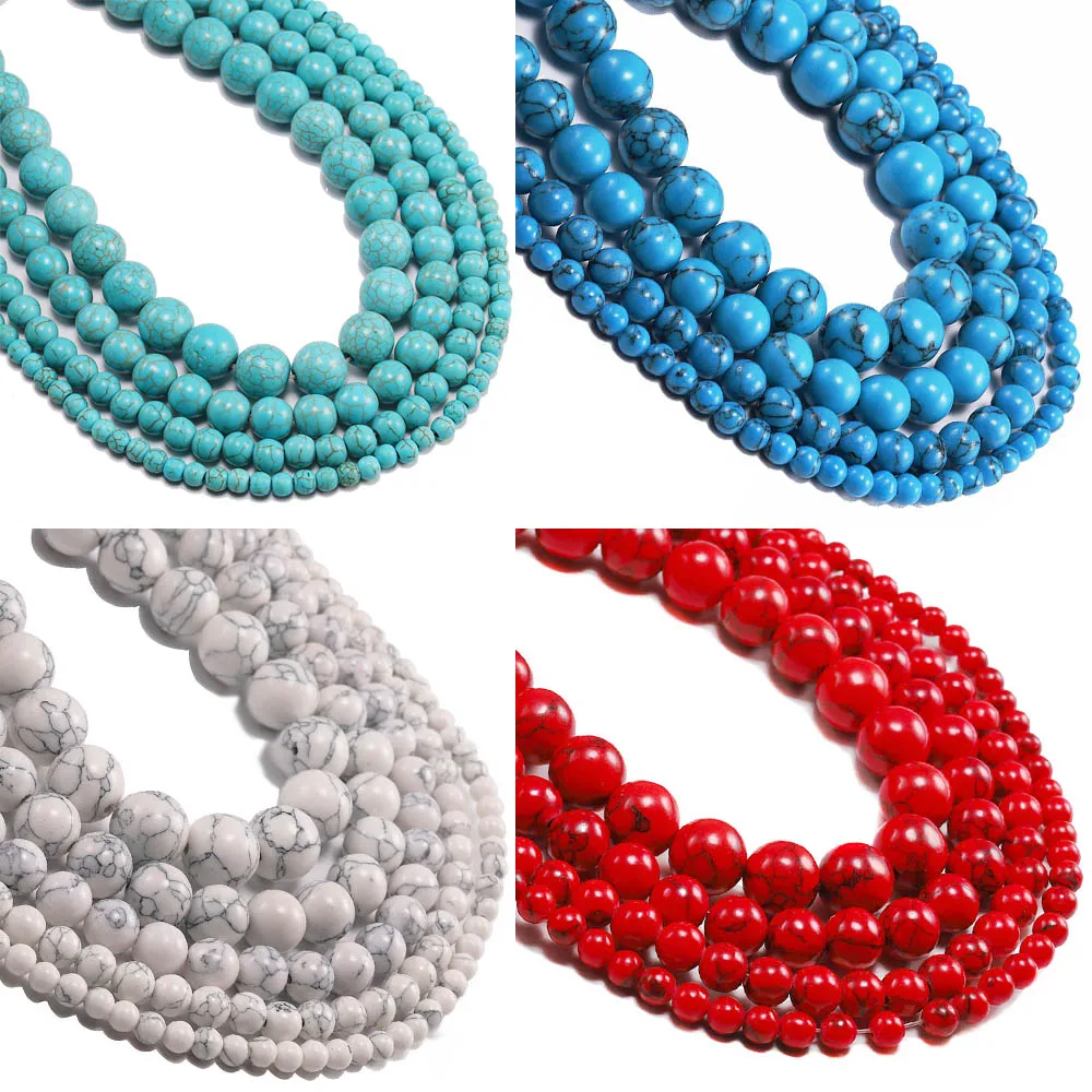 4-12mm Natural Stone Howlite Bead Blue Turquoises Pink Red Round Spacer Beads For DIY Jewelry Making Findings Accessories
