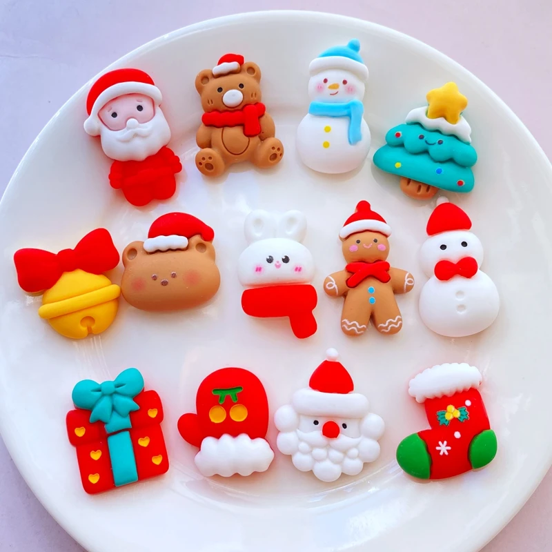 10Pcs New Cute Mini Christmas Collection Resin Figurine Crafts Flatback Cabochon Ornament Jewelry Making Hairwear Accessories