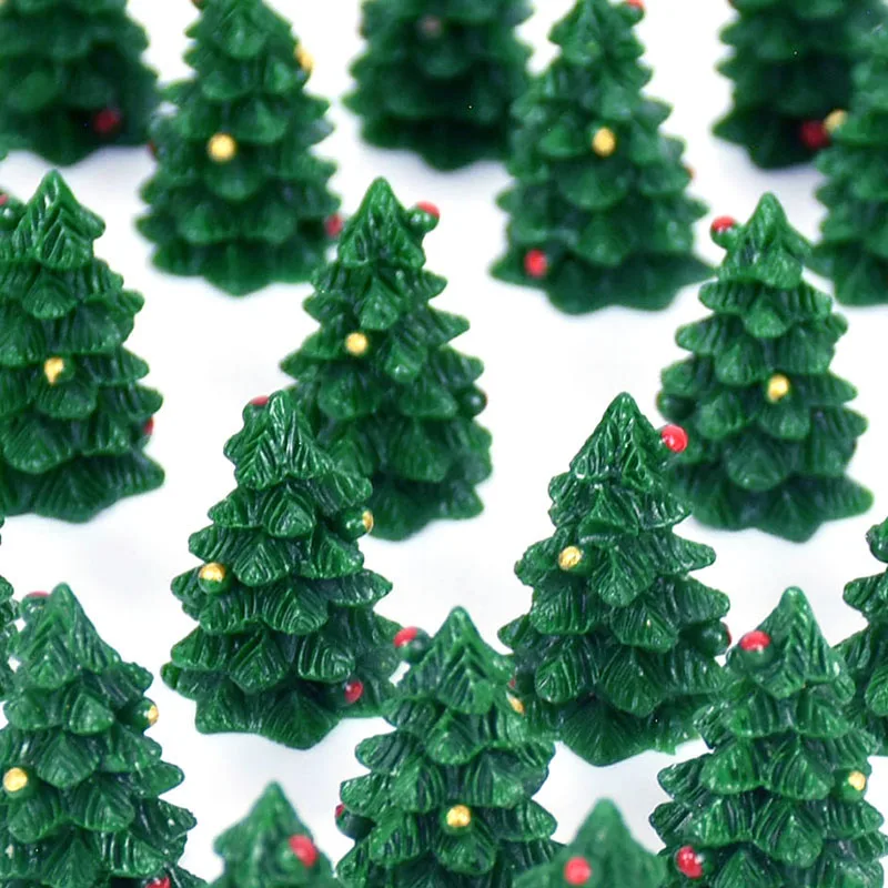 10P Resin 3D Christmas Tree Miniature Fairy Garden Figurines Dollhouse DIY Keychain Earrings Dangle Pendants Jewelry Accessories