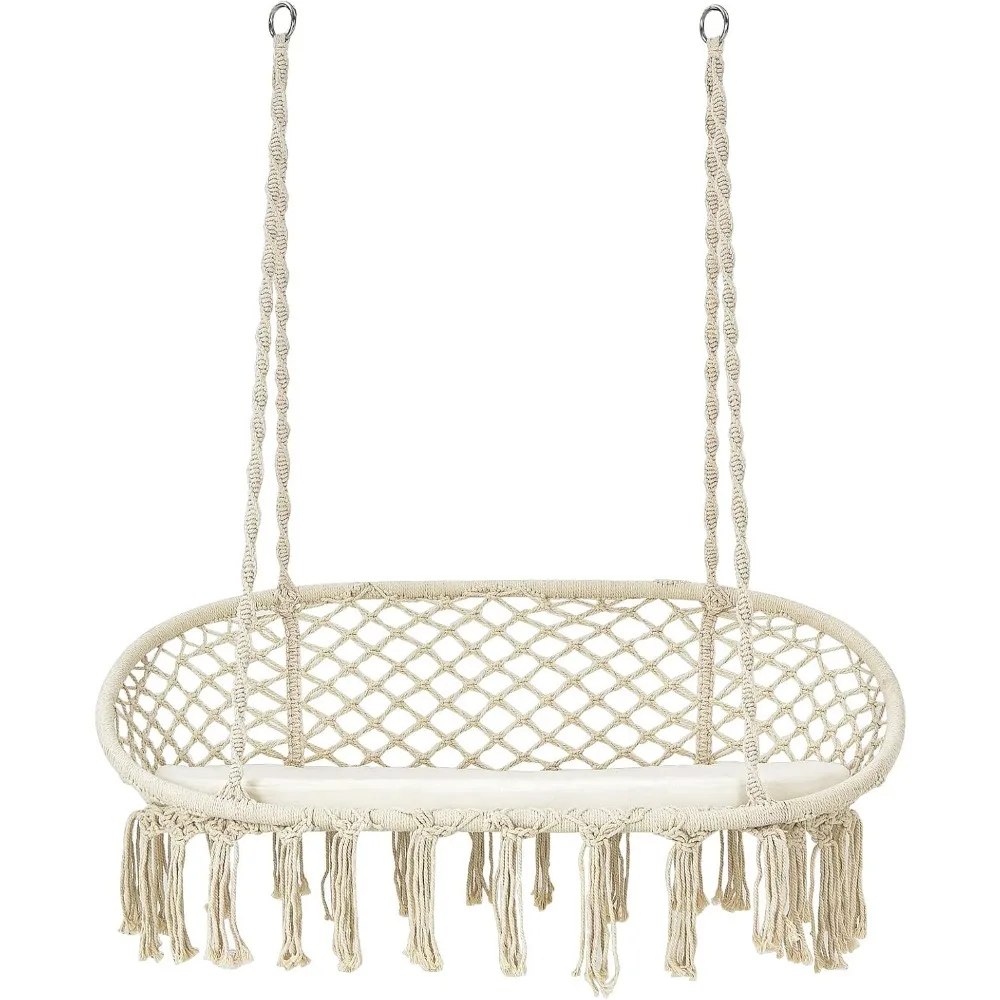Hammock Chair 2 Seat, Macrame Hanging Chair with Cushion, Hanging Cotton Ropes, Metal Frame, 440 lbs Capacity Indoor Swing  Read more