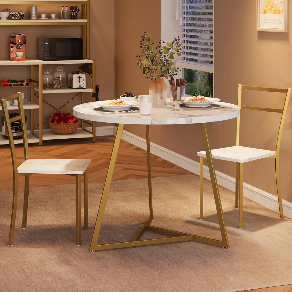 Dining Tables Set for 2, Kitchen Table and Chairs for 2, Modern Round Kitchen Table Set, 3 Piece Dining Room Tables Set