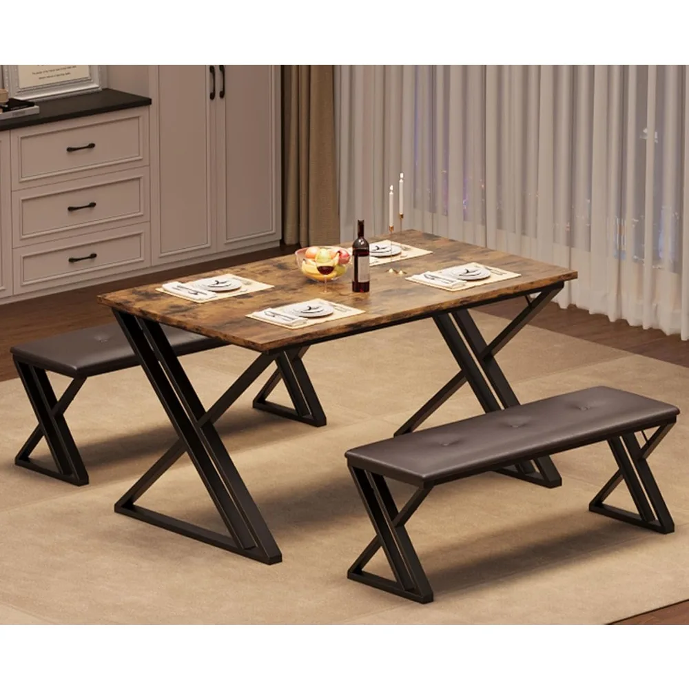 Space-Efficient 3-Piece Dining Set for 4 with 2 Benches, Ideal for Breakfast Nooks and Small Spaces