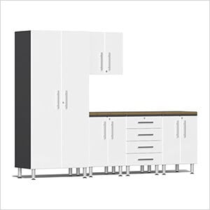 Ulti-MATE Garage Cabinets 6-Piece Garage Cabinet Kit with Bamboo Worktop in Starfire White Metallic