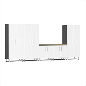 Ulti-MATE Garage Cabinets 6-Piece Garage Cabinet System with Bamboo Worktop in Starfire White Metallic