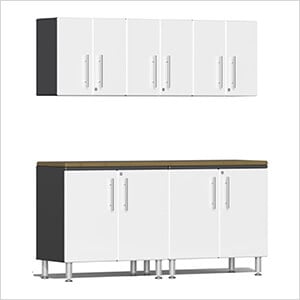 Ulti-MATE Garage Cabinets 6-Piece Garage Cabinet Kit with Bamboo Worktop in Starfire White Metallic