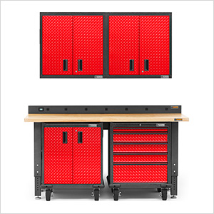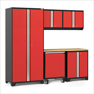 NewAge Garage Cabinets PRO Series Red 6-Piece Set with Bamboo Top