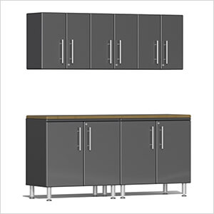 Ulti-MATE Garage Cabinets 6-Piece Garage Cabinet Kit with Bamboo Worktop in Graphite Grey Metallic