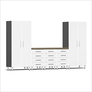 Ulti-MATE Garage Cabinets 6-Piece Garage Cabinet Kit with Bamboo Worktop in Starfire White Metallic