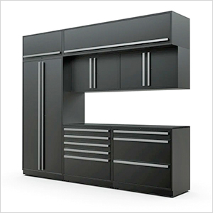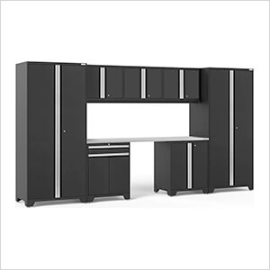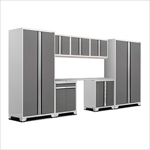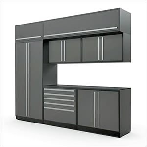 A great addition to your garage or shop, this NewAge platinum 8-piece Bold Series cabinet set with stainless steel top is made from 24 gauge steel fully welded frames.