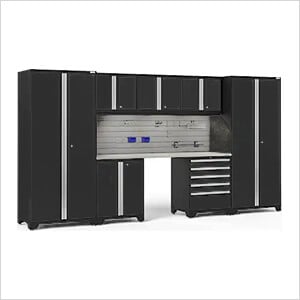 The NewAge Products 64125 8-piece PRO 3.0 series cabinet set with stainless steel worktop is made from 18 gauge steel fully welded frames and 19 gauge double wall doors.
