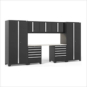 A great addition to your garage or workshop, the 8-piece PRO 3.0 series cabinet set with stainless steel worktop is made from 18 gauge steel fully welded frames and 19 gauge double wall doors.