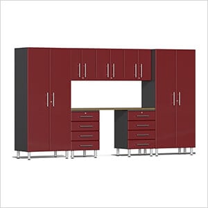 Ulti-MATE Garage Cabinets 8-Piece Garage Cabinet Kit with Bamboo Worktop in Ruby Red Metallic