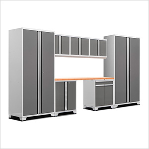 NewAge Garage Cabinets PRO Series Platinum 8-Piece Set with Bamboo Top