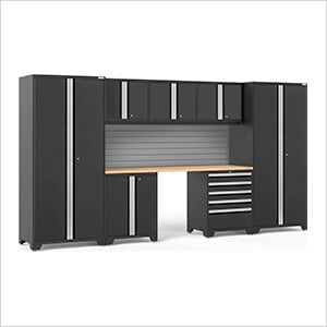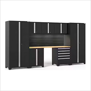 NewAge Garage Cabinets PRO Series Black 8-Piece Set with Bamboo Top and Slatwall