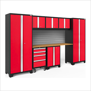 NewAge Garage Cabinets BOLD Series Red 8-Piece Set with Bamboo Top and Backsplash