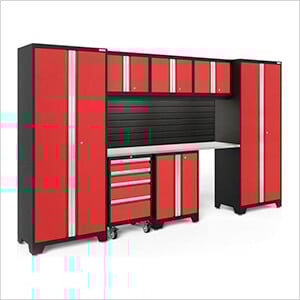 NewAge Garage Cabinets BOLD Series Red 8-Piece Set with Stainless Steel Top and Backsplash