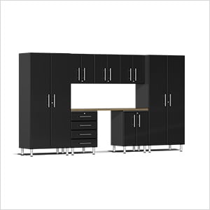 Ulti-MATE Garage Cabinets 8-Piece Garage Cabinet Kit with Bamboo Worktop in Midnight Black Metallic