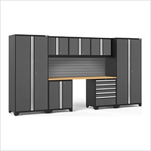 NewAge Garage Cabinets PRO Series Grey 8-Piece Set with Bamboo Top and Slatwall