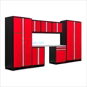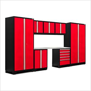 NewAge Garage Cabinets PRO Series Red 8-Piece Set with Stainless Steel Top