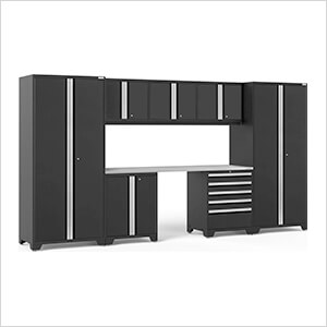NewAge Garage Cabinets PRO Series Black 8-Piece Set with Stainless Steel Top