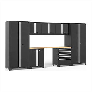 NewAge Garage Cabinets PRO Series Black 8-Piece Set with Bamboo Top