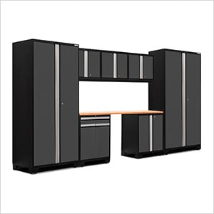 NewAge Garage Cabinets PRO Series Grey 8-Piece Set with Bamboo Top and LED Lights