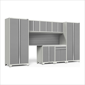 NewAge Garage Cabinets PRO Series Platinum 8-Piece Set with Stainless Steel Top and Slatwall